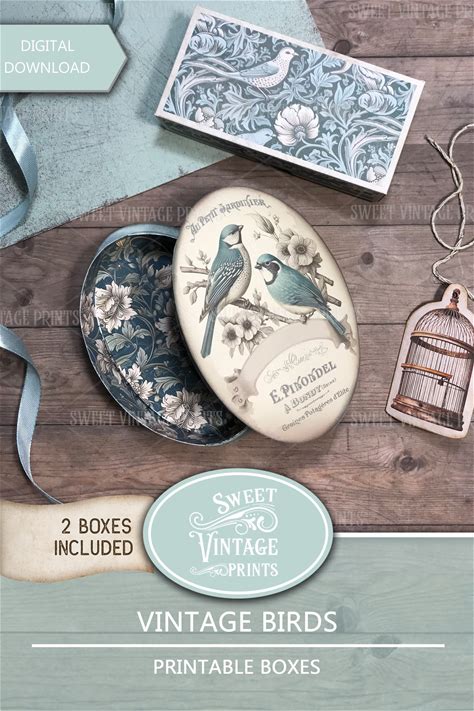 Printable Box Set, Vintage Bird Boxes, DIY Gift Box Set, Printable Ephemera Journal Box, DIY Paper Box Kit, Paper Box Digital Download Vbd