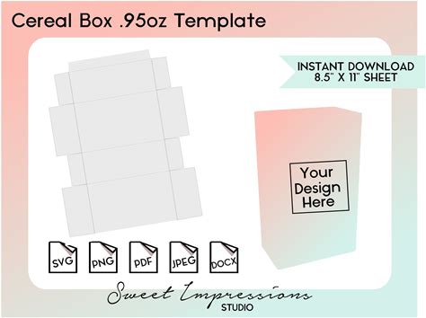 Cereal Box Wrapper Template | Blank Template | Svg, Png,Pdf, Jpeg, Docx, Canva | DIY Printable | .95Oz Box Size | INSTANT DOWNLOAD