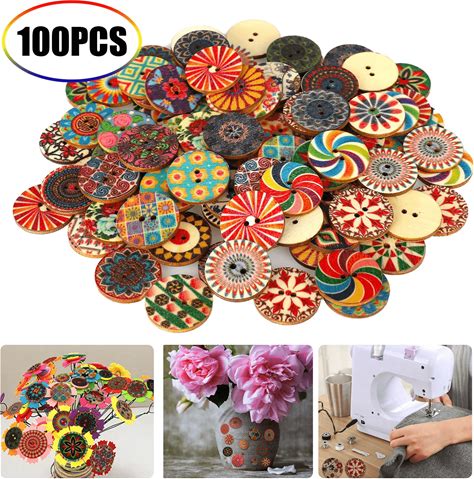 Lot Of Wooden Art Buttons 2 Hole Mixed Colors For DIY Sewing, Scrapbooking & Crafts | Prime Goods Market