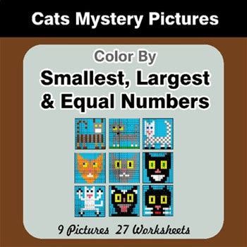 Comparing Numbers: Smallest, Largest, Equal Numbers - Cats Math Mystery Pictures