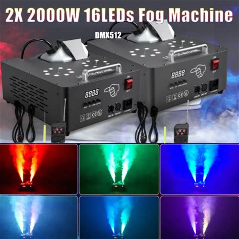 2X 2000W Fog Machine Vertical Upspray Rgb 16Leds Stage Smoke Fogger