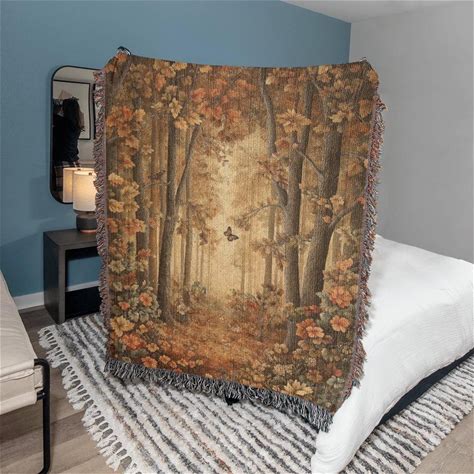 Autumn Enchanted Forest Tapestry Blanket Woven Wall Hanging Aesthetic Tapestry Nature Blanket Forestcore Cottagecore Forest Blanket