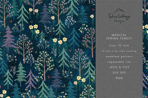 Spring Forest Seamless Pattern: Floral Fabric Design (Digital Download)