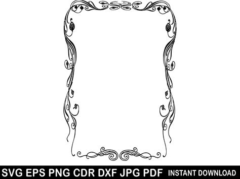 Decorative Frame Dxf, Wedding Vintage Floral Border Vector, Rectangle Victorian Frame Svg