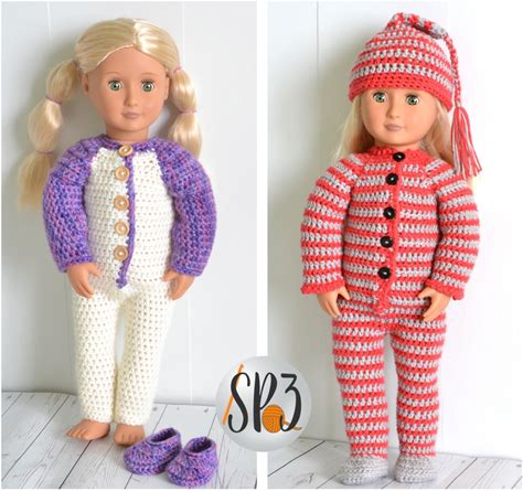 18" Doll PJ Set Crochet Pattern: Button-Up Pajamas & Slippers (PDF Pattern)