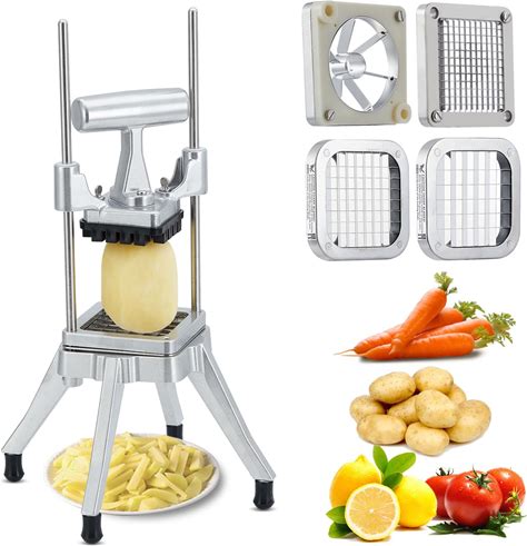 Garvee Commercial Vegetable Fruit Chopper With 4 Stainless Steel Blades (1/4", 3/8", 1/2" & 6-Wedge Slicer), Heavy Duty French Fry Cutter Manual Dicer
