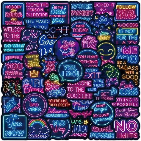 Stickers,Cool Neon Sign Vinyl Stickers 200 Pcs or Teens and Ad