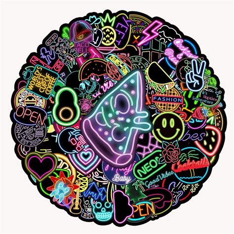50 Colorful Neon Style Stickers Cool Decals