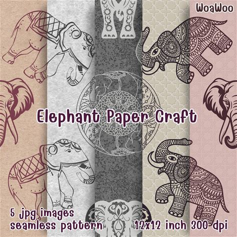 Vintage Elephant Seamless Pattern, Paper Craft (Digital Download)