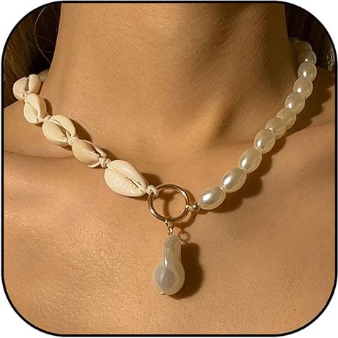Baroque Pearl Necklace For Women Boho Pearl Shell Choker Necklace Dainty Pearl Pendant Necklace Vintage Pearl Charm Necklace Birthday Wedding Jewelry