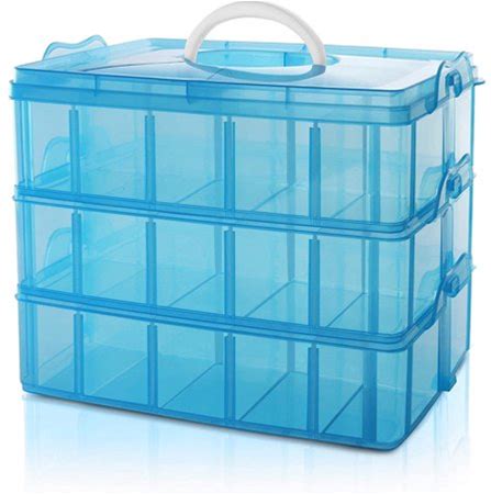 Craft Storage Box, Casewin Compartments Divider Organizer, 3 Layers 18 Compartments Transparent Detachable Storage Box With Handle For Crafts, Jewelry