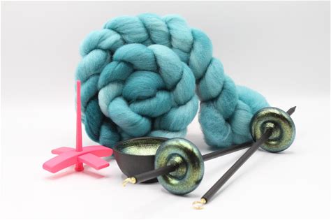 Beginners Lace Weight Complete Drop Spindle Kit - Blue - Top Whorl, Bottom Whorl, Supported, And Roving