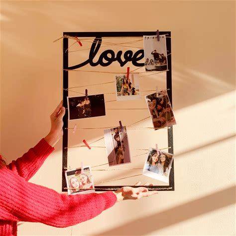 Rustic Love Photo Frame With Clothespins - Eco-Friendly String Holder, Twine Wall Display, Vertical Memory Board, Kids Safe Decor
