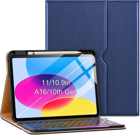 Amzcase For iPad A16 11th 10th Generation Case With Keyboard - 7 Colors Backlight Detachable Folio Keyboard Case For iPad (A16) 11th Gen 2025 & 10th