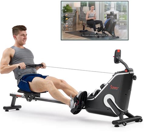Sunny Health & Fitness Hydro + Dual Resistance Smart Magnetic Water Rowing Machine, Black