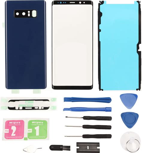 Phone Glass Cover Kit For Galaxynote 8, Replacement Rear Cover Back Glass And Front Outer Screen Glass Cover Repair Kit, Cell Phones Accessories (Blue