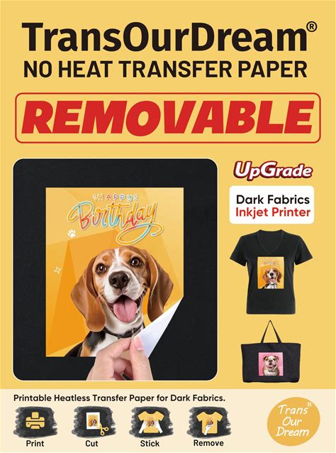 Transourdream Upgraded NO Heat Transfer Paper For Dark Fabric (8.5X11", 10 Sheets), No Iron On Transfer Paper For T Shirts, Removable Heatless