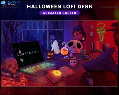 Animated Twitch Screens Halloween Lofi Desk , Halloween Room Stream Screens, Vtuber Background With Spider, Ghost, Skull...