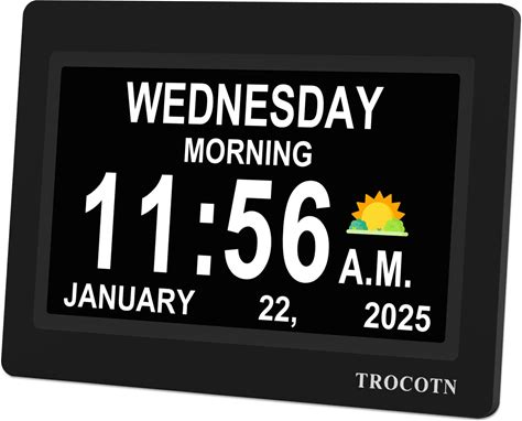Yescom 10Inch Digital Day Clock With Large Display 8 Alarm Calendar Dementia Clock For Elderly Black