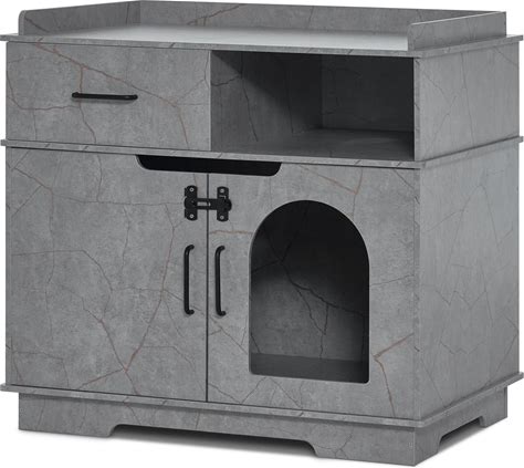 JY QAQA Cat Litter Box Enclosure,Litter Box Furniture Hidden With Barn Door,Wooden Washroom Furniture,Cat House,Fit Most Of Litter Box