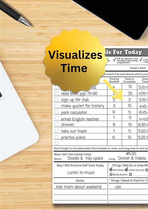 Homework Tracker for ADHD Students, Daily and Weekly Home
