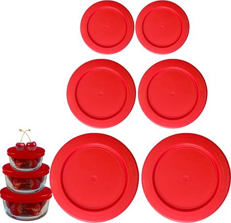 2, 4 & 7 Cup Red Replacement Lids/Covers For Pyrex, Anchor Hocking & Klareware Storage Bowls Lids Only Glass Container Not Included (6 Pack Two Of