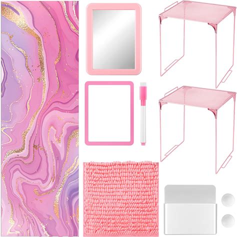 Hushee 10 Pcs Locker Accessories Kit Locker Organizer And Decorating Kit Back To School Essentials Magnetic Wallpaper Carpet Mirror Shelf Whiteboard
