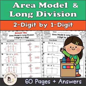 Area Model & Long Division Worksheets - 2-Digit By 1-Digit Division Practice