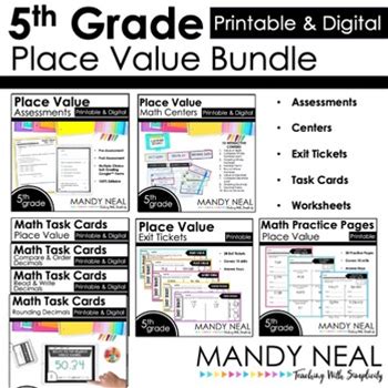 Fifth Grade Place Value Centers, Assessments, Task Cards, Worksheets Bundle