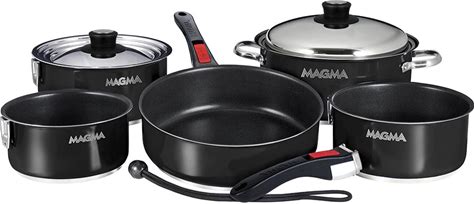 Magma Nestable 10 Piece Induction Non-Stick Enamel Finish Cookware Set - Jet Black [A10-366-JB-2-IN]