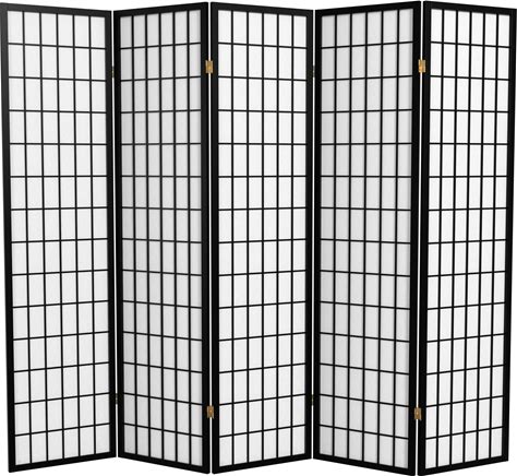 Red Lantern 6 ft. Tall Window Pane Shoji Screen - Black - 5 Panels