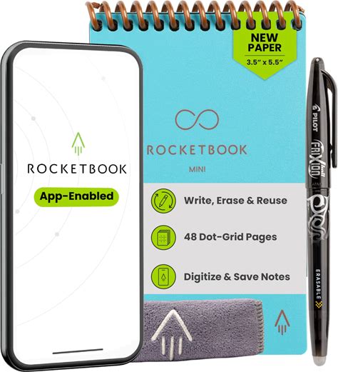Rocketbook Mini Reusable Smart Notepad, Pocket Size On-The-Go Notebook, 3.5X5.5, Teal (Pack Of 1)
