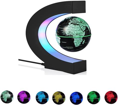 Magnetic Levitation Globe,Floating Rotating World Map Globe,Geographic Globes Cool Gadget With Colored LED Lights And C Shape Anti Gravity ,Home/
