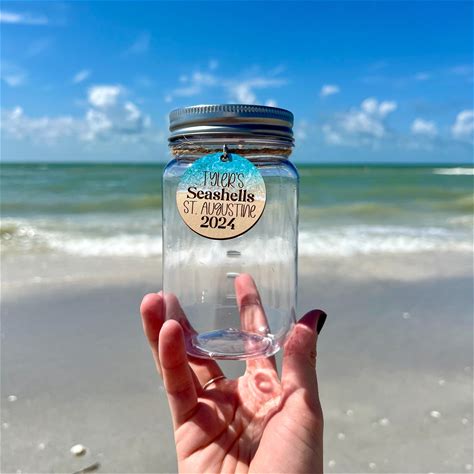 Plastic Display Jar For Seashells With Name Destination & Year, Vacation Keepsake Gift For Kids, Storage Container For Shell Collection