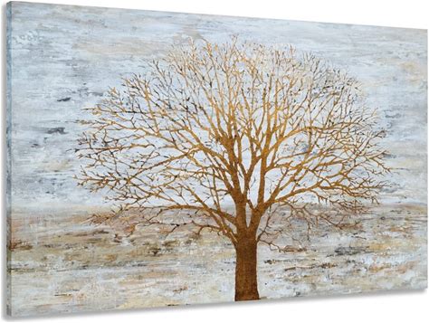 Handmade Abstract Golden Tree Paintings On Canvas Handpainted Rich Textured Acrylic Painting Modern Oil Paintings Wall Art Hand Painted Artwork Oil Painting For Living Room Wall Decor