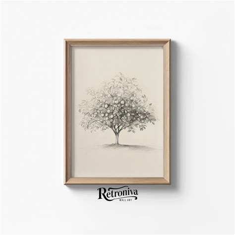 Minimalist Apple Tree Sketch Drawing Vintage Farmhouse Decor | Neutral Tree Sketch Art Print Kitchen Wall Art | Retroniva PRINTABLE SKT-024