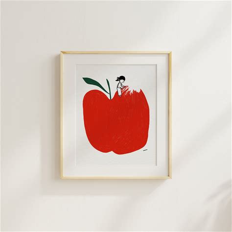 Apple Line Art Print | Minimalist Black And White Wall Decor (Digital Print)