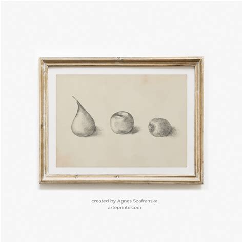 Vintage Fruit Pencil Drawing Sketch Art Print: Pear Apple And Kiwi Illustration - Giclee Prints