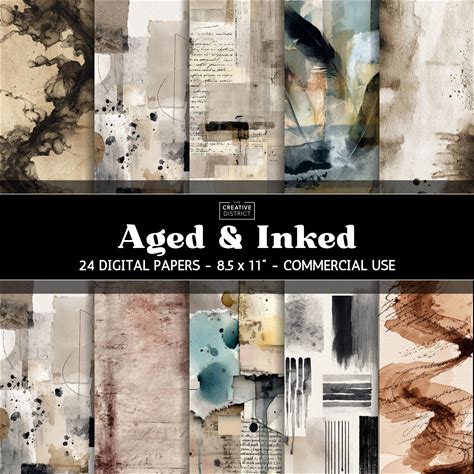Decorated Page Digital Paper, Old Papers & Ink Stain Paper Backgrounds Printable Scrap Collage Sheets For Junk Journal, Scrapbooking