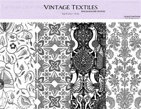 Ink Saver Backgrounds, Printable Vintage Textiles, Junk Journaling, Black & White, Vintage Ink Saving Pages, Vintage Backgrounds