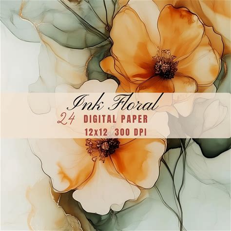 Abstract Alcohol Ink Papers - 24 Tan Floral Digital Backgrounds