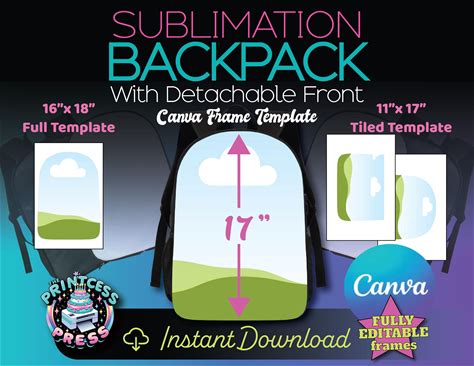 Sublimation Backpack Template | Only For 17" Backpack With Detachable Fronts | Sublimation Book Bag Template | Full Size & 11X17 Inch Prints