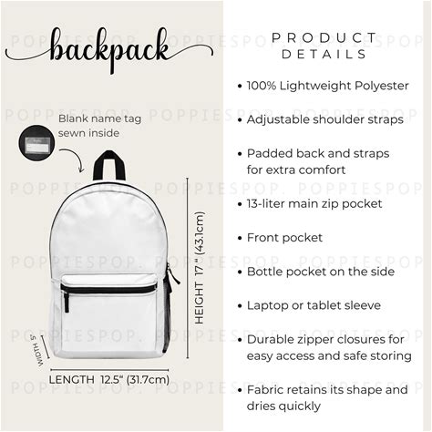 Backpack Size Chart, School Backpack Product Listing Card, Backpack Size Guide, Backpack Mockup, Printify Backpack, School Bag Size Chart