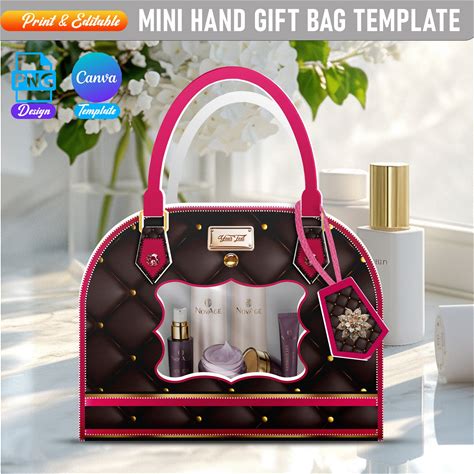 Popular Purse Gift Bag Box Template, DIY Designer Handbag Gift Box, Luxury Handbag Gift Treat Box Canva Editable Special Occasion Bag