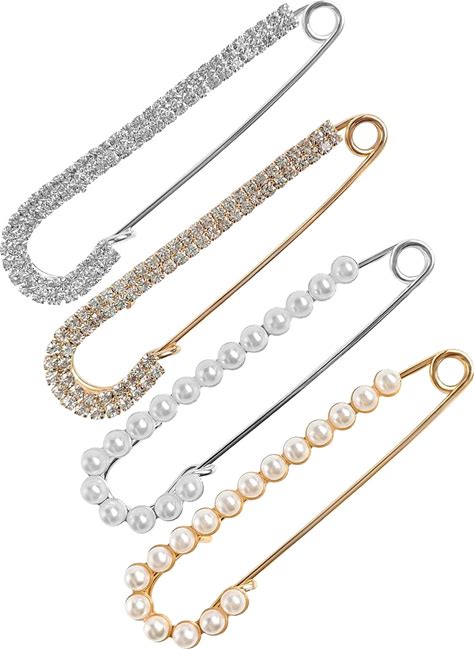 IANZE Women Pins Brooch Sweater Clips Shawl Clips Pearl Brooches Faux Crystal Safety Pins Dress Shirt Clips For Women 4 Pieces