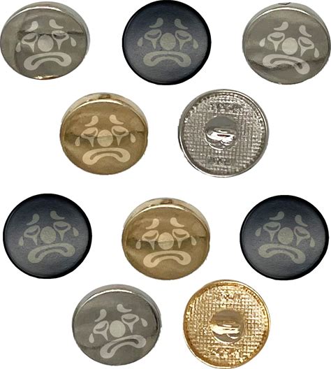 Sad Clown Face 0.6" (15Mm) Round Metal Shank Buttons For Sewing - Set Of 10 - Black Color