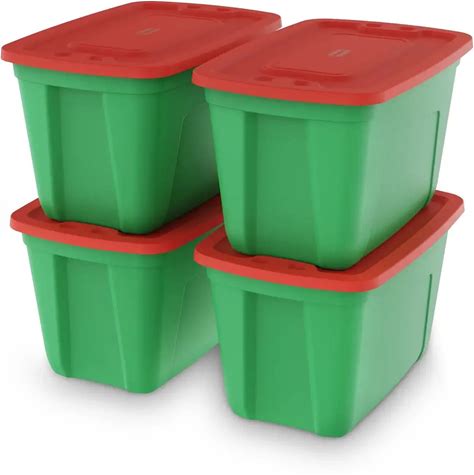 4 Pack 18 Gallon Christmas Storage Bins With Lids, Stackable Totes, Rugged Tubs, Garage Organization