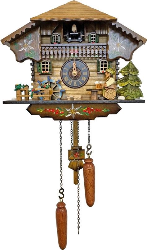 Trenkle Quartz Cuckoo Clock Black Forest House With Moving Wood Chopper And Mill Wheel, With Music TU 4217 QM