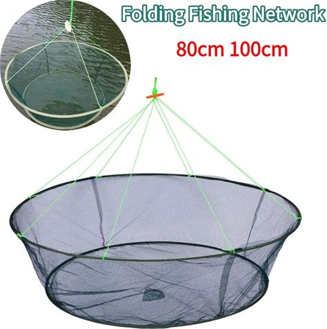Foldable Drop & Pier Fishing Net Portable Bridge Net Crab Bait Shrimp Net With Steel Hoop Nylon Mesh
