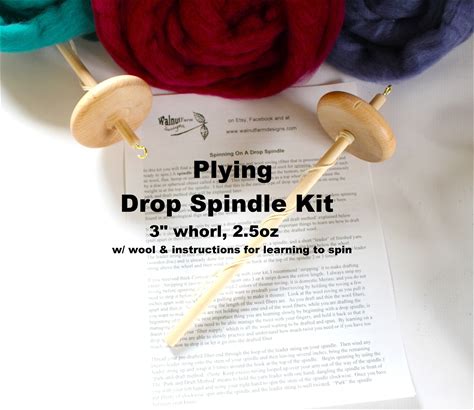 DROP SPINDLE KIT For Beginners: Top Whorl Maple Drop Spindle + 100G/3.5Oz Wool Roving For Spinning Yarn